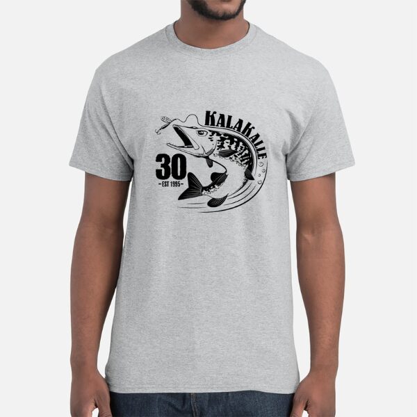 KalaKalle 30 v. t-paita on nyt saatavilla. Kala-Kallen juhlavuoden kunniaksi teetetty KalaKalle 30 v. t-paita on saatavissa kahdella ei kuvalla, taimenella ja hauella