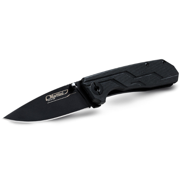 Marttiinin Musta 8 taittoveitsen kahva on valmistettu kuituvahvistetusta G10-komposiitista. Kahdeksansenttinen terä lukittuu käyttöasentoon liner lockilla. Kahvassa vyöklipsi, jonka avulla taittoveitsen saan pidettyä kätevästi käden ulottuvilla.