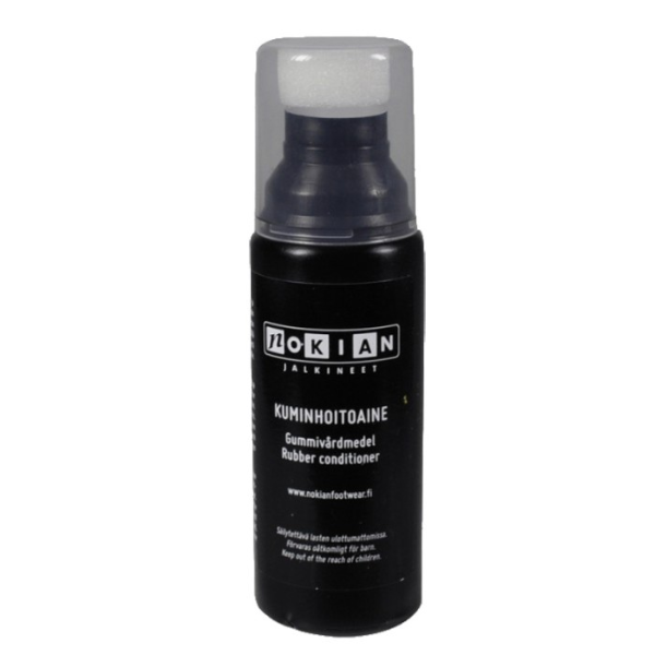 Nokian kuminhoitoaine palauttaa alkuperäisen kiillon ja säilyttää kumin elastisuuden. Muodostaa likaa hylkivän pinnan ja suojaa tuotetta.