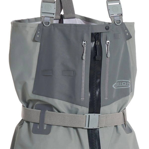 Zip-mallissa on kaksi vettähylkivää etutaskua, jotka on valmistettu samasta materiaalista kuin kahluuhousut. Taskujen ulkopuolella on kiinnityslenkit sekä lisähihnat ulko- ja sisäpuolella, joihin voi kiinnittää varusteita. Päävetoketjuna toimii kestävä TiZip Masterseal 10, ja muut vetoketjut ovat laadukkaita YKK AquaGuard -malleja.