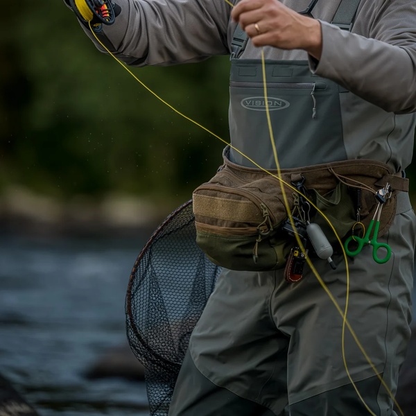 Vision Love Handles 2 Waist Pack on suosittu ja monipuolinen vyölaukku kalastajalle, joka haluaa pitää varusteet helposti saatavilla ilman että ne häiritsevät heittämistä. Leveä ja pehmustettu vyöosa jakaa painon tasaisesti lanteille, mikä parantaa käyttömukavuutta ja vakautta.